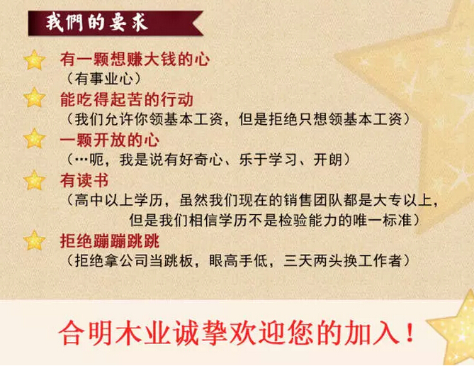 合明木业高薪诚聘啦!想要了解合明木业这家企业,以及岗位要求、薪资待遇,请往下看起~