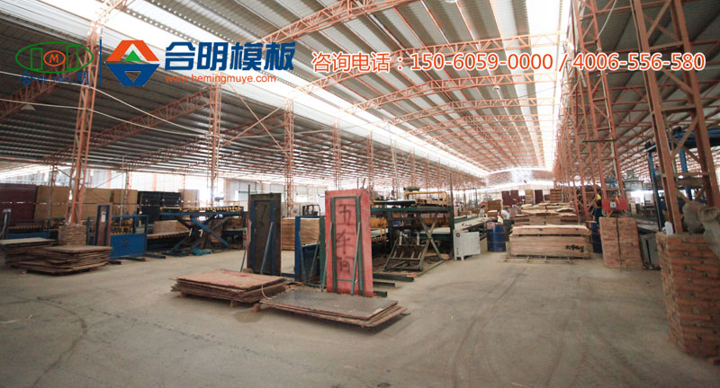 合明木业是福建省最大的建筑模板生产厂家,合明产业园共设有七大生产车间,总面积共40000平方米,车间内共设40条模板生产流水线和66台压机,日产量达50000张建筑模板。车间实行整理、整顿、清扫、清洁、素养5S管理,作业现场有序、整洁,工人作业规范。