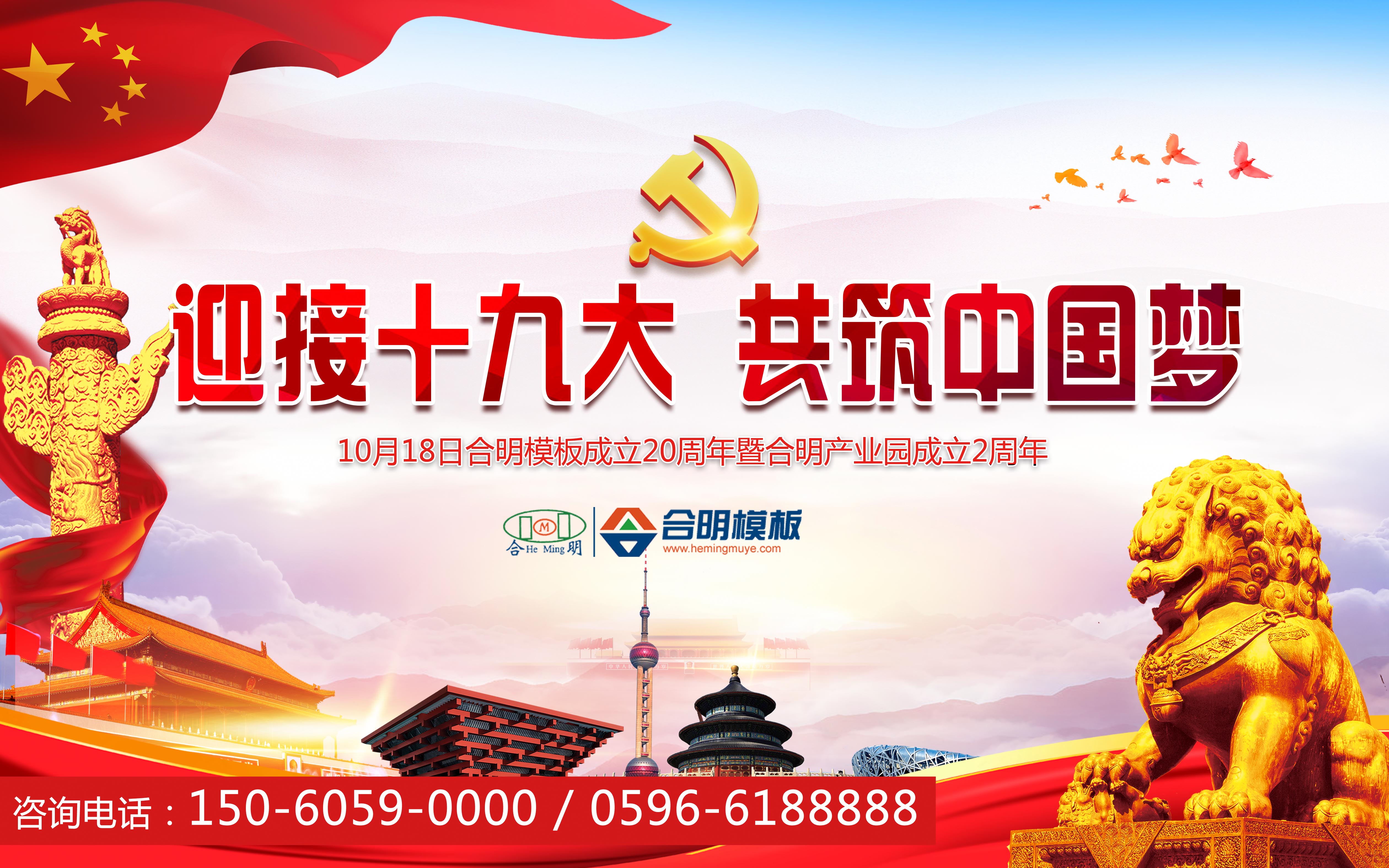 2017年10月18日,正值合明产业园成立2周年,暨合明木业公司成立20年周庆日。借此重大喜庆节日,祝贺中国共产党十九大的胜利召开!祝贺祖国繁荣富强!国强则民富,合明模板也将以饱满的热情和昂扬的精神,坚定围绕在十九大政策方针下奋斗不止,争创新业绩!