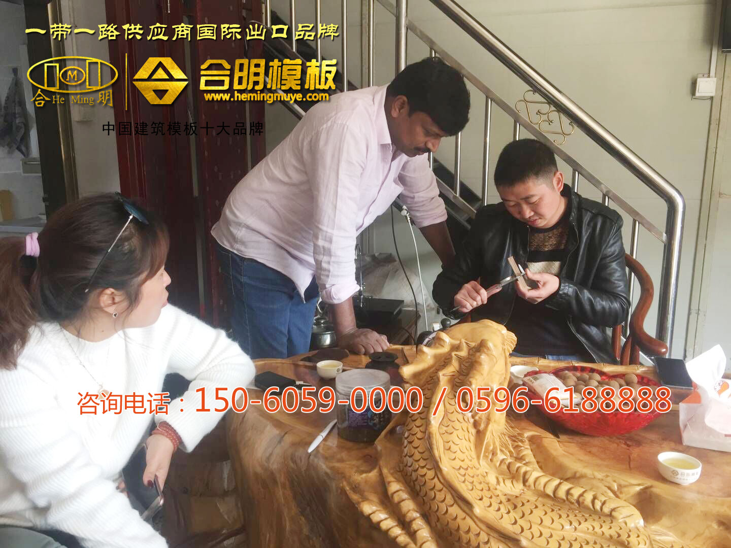 本次,印度建筑材料贸易商慕名来访,一方面全面考察合明模板的生产实力,一方面洽商合明模板在印度的经销代理。据悉,合明模板目前已经和海外近50个国家建立经销合作关系。