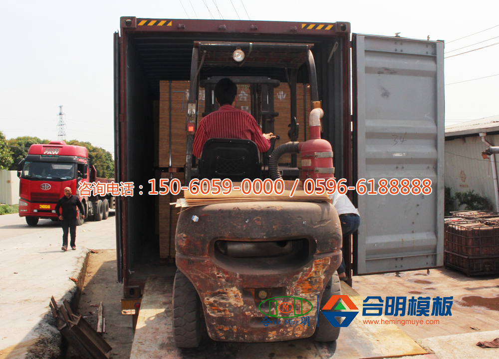 近日、合明模板出口至加拿大、阿尔及利亚、迪拜、印尼、菲律宾、印度等国家,共21个货柜,出口的均为合明覆膜板。
