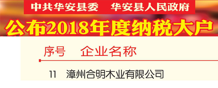 2018年度,合明模板纳税记录良好、纳税金额大,以纳税金额第11名的成绩被评为“纳税大户”。
