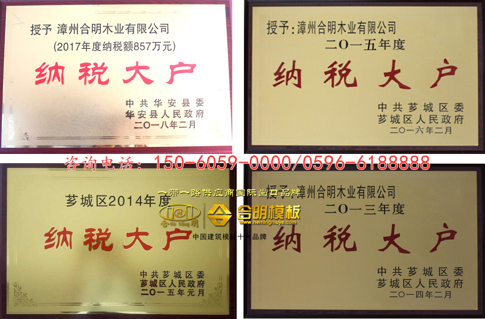 据悉,合明模板自2013年起,连续多年获此荣誉,说明了合明模板经营良好,企业制度规范,公司营业额大,诚信纳税。