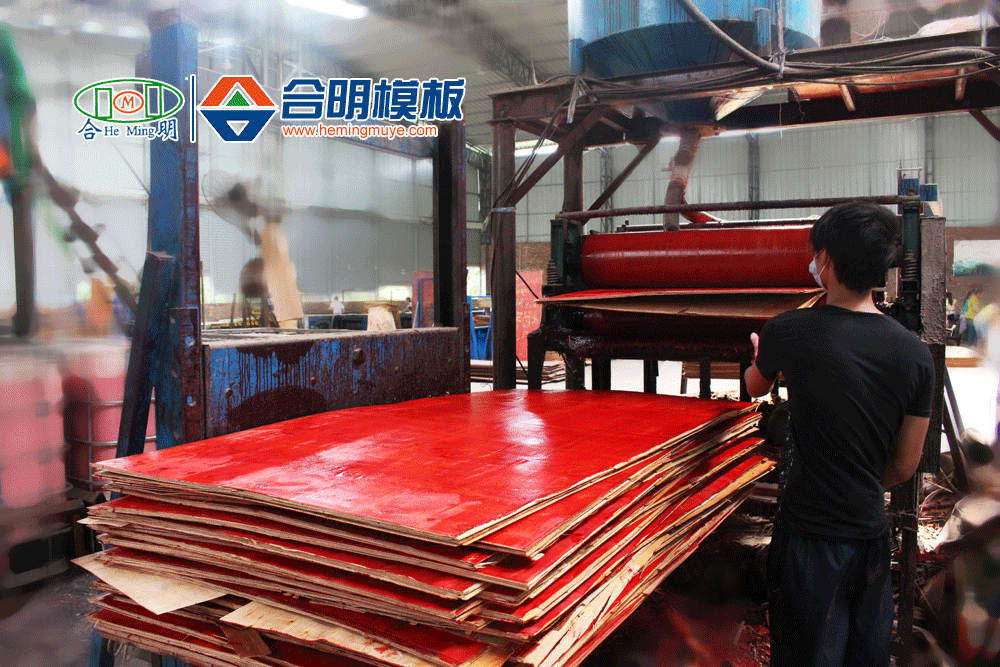 这就是合明模板生产车间,每道程序都有条不紊,工人用他们娴熟的技艺汇制出一张张一级建筑模板。