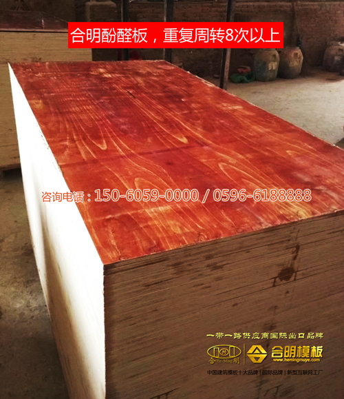 合明酚醛板货真价实,重复使用8次没问题,模板握钉力强,正常使用时不开胶,拆模时不脱皮,墙面整洁。