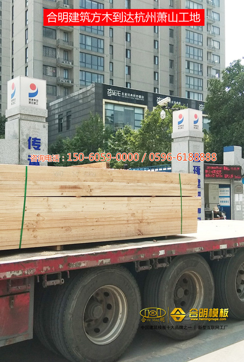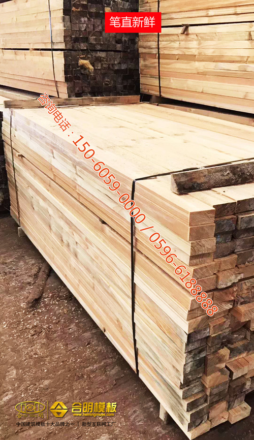 合明建筑方木新鲜笔直,质地厚实,韧性十足,两人使劲踩不坏,厦门交通轨道等众多建筑工地使用。