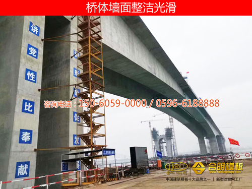 为确保工程质量,泉厦漳联盟路项目在各建设环节坚决坚持高质量、高标准,用最好的建材,筑最品质工程。合明模板是国内建筑模板品牌中走在前列的木制模板,韧性超强,承重力超大,品质超众,有效助力大型跨海大桥建设。